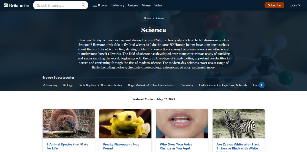 Obrázek 4, Science stránka Britannicy, zdroj: autor
