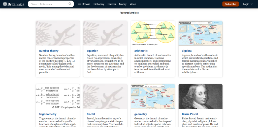 Obrázek 5, Mathematics stránka Britannicy, zdroj: autor