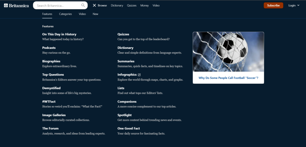Obrázek 10, Features stránka Britannicy, zdroj: autor