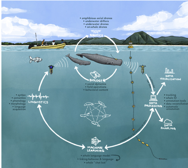 Figure 1: An approach to sperm whale communication (source: https://www.sciencedirect.com/science/article/pii/S2589004222006642#bib131)