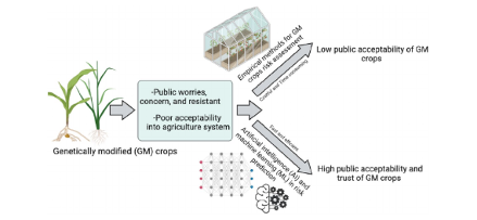 Produkce geneticky modifikovaných plodin se často setkává s výzvami a odporem, zejména ze strany veřejnosti a ekologických zemědělců. Tradiční metody hodnocení rizik, které zahrnují empirické postupy a kontrolované experimenty, jsou nákladné a časově náročné, což vedlo k nízké veřejné přijatelnosti kvůli obavám z dlouhodobých účinků GM plodin. Nicméně kombinace umělé inteligence a algoritmů strojového učení[1] (Machine Learning, ML) v zemědělských systémech může nabídnout rychlé a efektivní metody pro hodnocení rizik GM plodin pro životní prostředí a zdraví spotřebitelů. Použitím současných dat pro konkrétní plodinu tento nástroj dokáže předpovědět budoucí rizika, zvýšit transparentnost a důvěru mezi spotřebiteli, což může vést k vyšší přijatelnosti GM produktů (Mmbando, 2024).